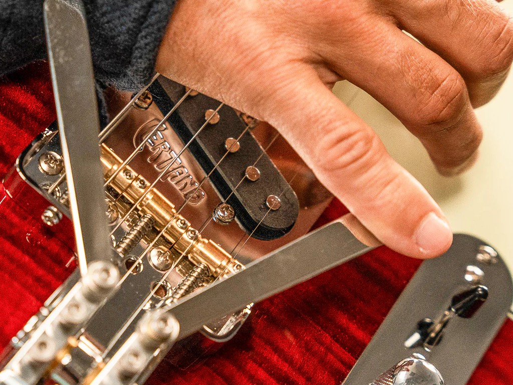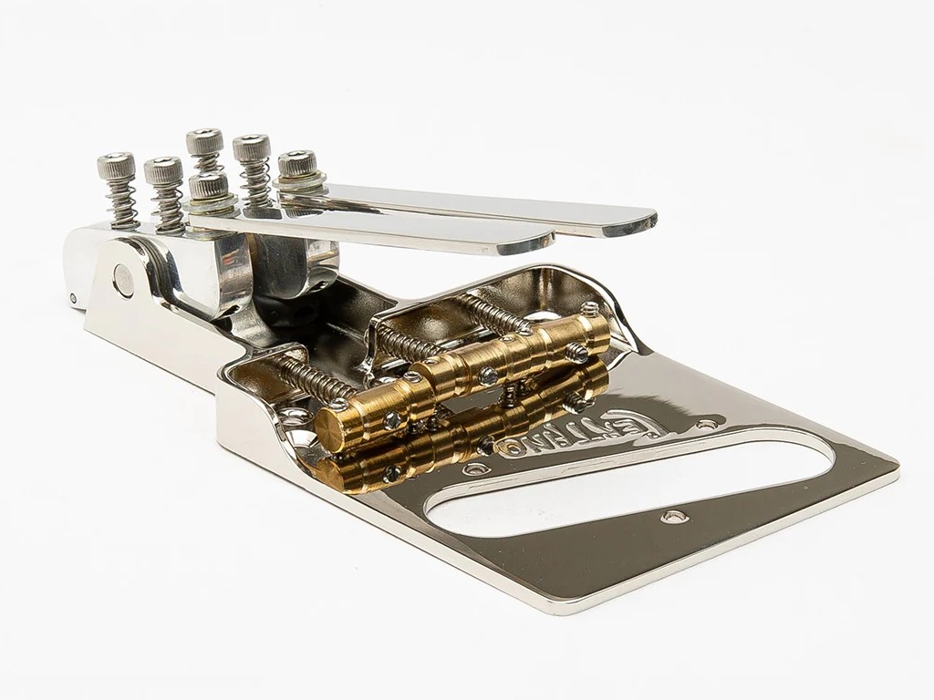 The Certano T-Bender allows Telecaster® players to bend the B or G string a half or whole step up to achieve glistening pedal steel tones and expressive chord voicings. Installation is super-simple and 100% reversible. No routing is required. Compensated brass saddles offer classic tone and accurate intonation, and tension-loaded arms can be set for maximum comfort or moved out of the way entirely. Simple, elegant and complete, the Certano T-Bender is the ultimate B and G bender solution.