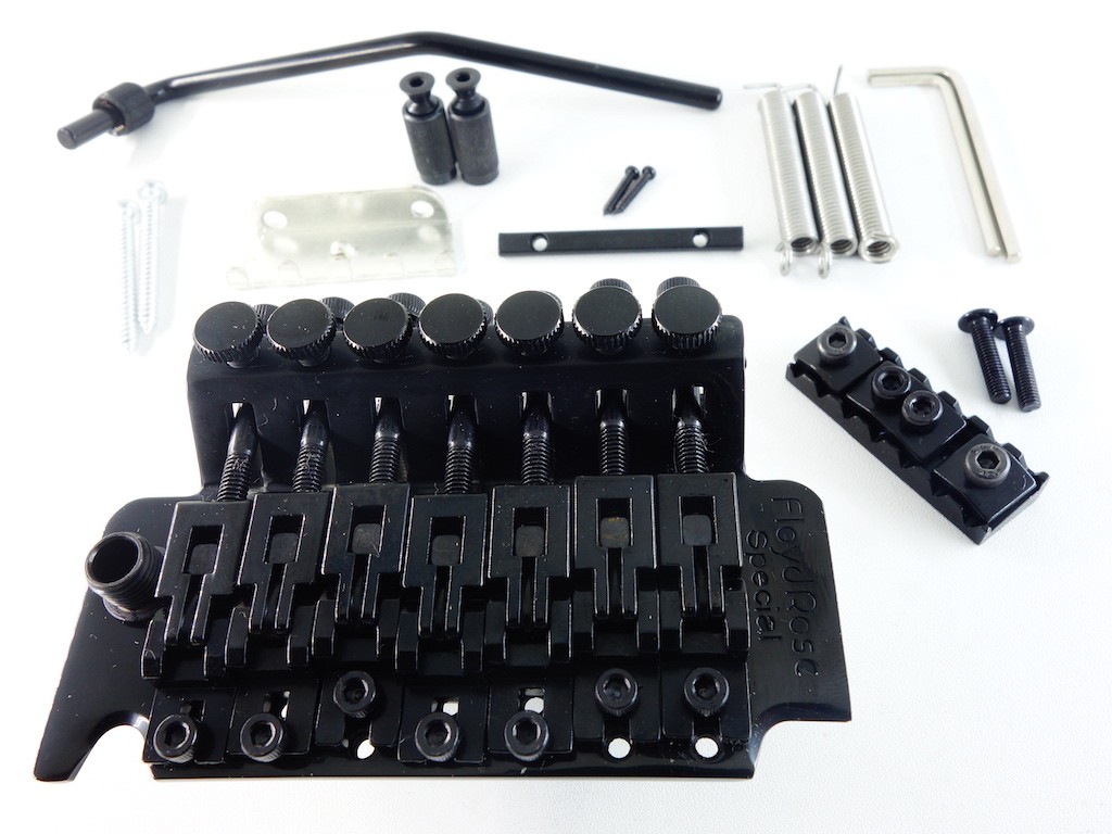 • The Floyd Rose Special is our Authentic version of a licensed Floyd Rose tremolo system manufactured in Korea exclusively for Floyd Rose. The Floyd Rose Special maintains the construction parameters and features of an Original Floyd Rose, while utilizing zinc alloy saddles in place of steel and a zinc alloy sustain block in place of brass. The design specifications and high quality materials of the Special Series Floyd Rose bridge will hold up to the demands of today's performers. Available in a variety of nut sizes to fit practically any electric guitar, the tremolo kit contains the bridge, locking nut, springs & claw, mounting studs, and all hardware necessary for installation.