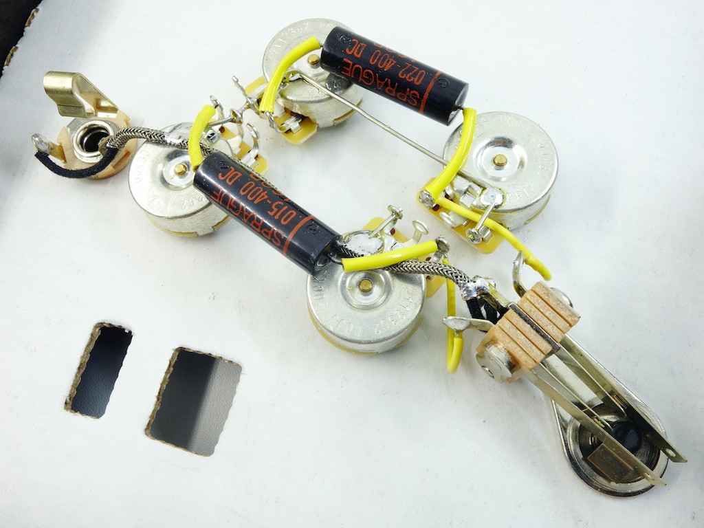 Our unique independent 50's wiring utilizes the benefits of vintage style wiring with a no compromise solution for independent volume controls in the middle position. Each position on your 3-way toggle will benefit from the 50's wiring with more overall presence and less treble loss when rolling the volume back, while allowing you to have smooth independent volume controls for each pickup in the middle position. That along with our easy to turn custom vintage taper CTS pots, authentic reproduction Luxe Sprague Black Beauty paper and oil capacitors, and Switchcraft toggle switch and jack, makes this the most worthy upgrade for your SG!