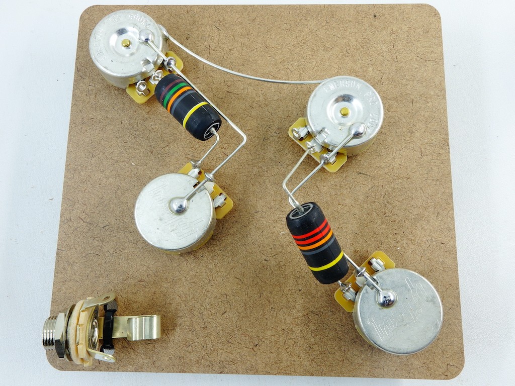 This is a prewired harness for PRS 4-Knob Guitars. Carefully wired “50’s Style” and grounded with vintage spec buss wire for a great vintage tone. For import guitars you may need to enlarge the holes for the higher quality US spec electronics to fit and also you may need US Spec knobs (to accept 24 teeth split shafts).