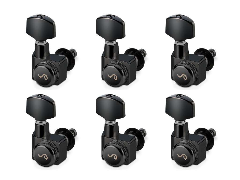 Schaller M6 Fender-Style Locking Staggered Guitar Tuners Black Set 6L 10560420.01.50