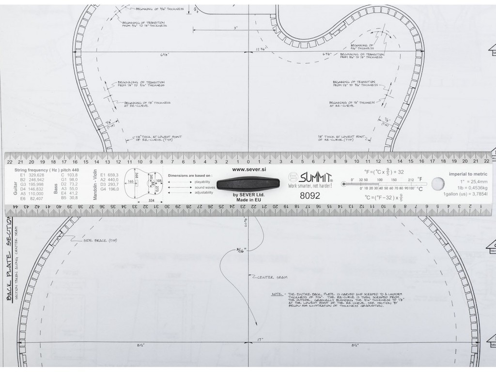 - Straightedge function & ruler (with luthier helpful information) on the other side