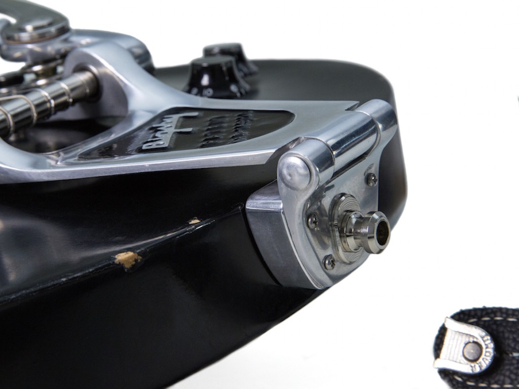 The TOWNER Hinge Plate Adaptor and 2 1/2″ strap button screw acts as a retainer holding the BIGSBY® to the guitar body, relieving you from having to drill four extra screws into your guitar.