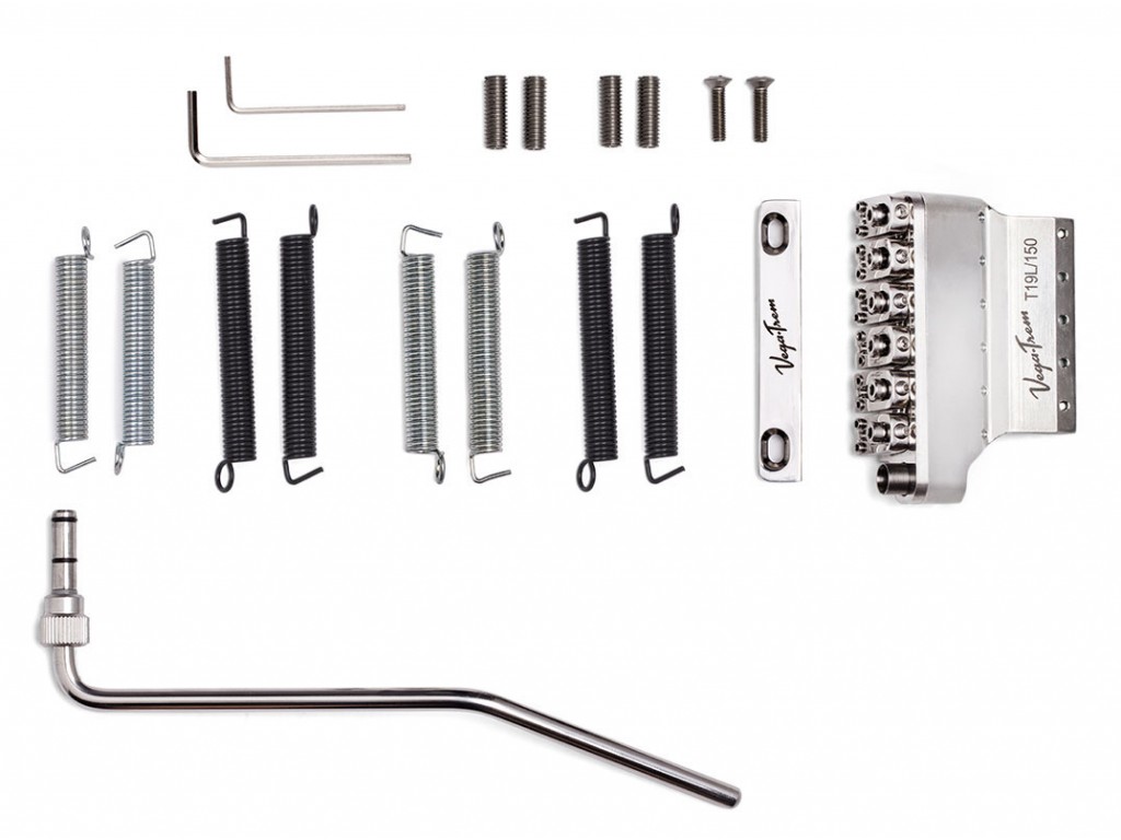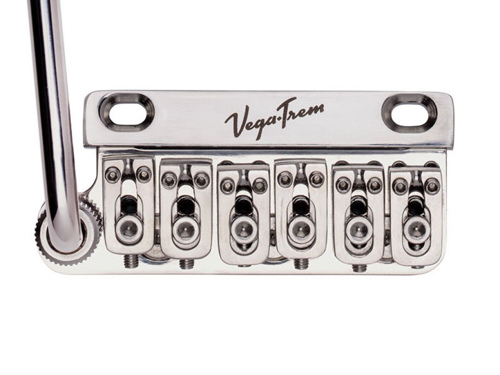 The VegaTrem VT1 fits guitars equipped with the traditional six-screw vibrato system