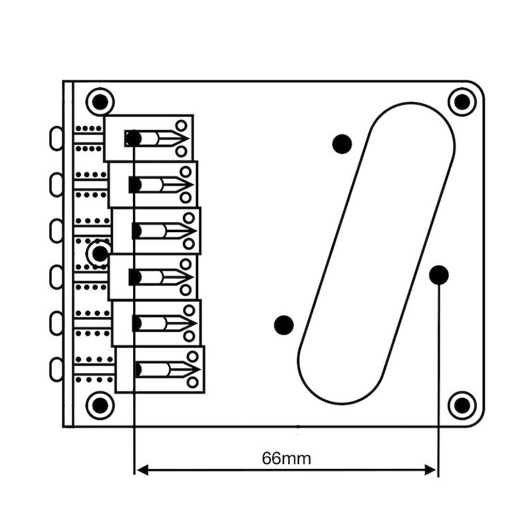 • For T-style guitars that use modern dimensions bridge (66mm between the string holes to the top screw of the bridge pickup, see attached scheme)